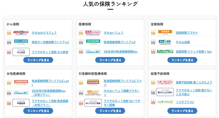 ※ランキングは各保険商品の優劣や推奨を示すものではなく、特定期間の申込件数、資料請求件数、及びアクセス数に基づいて作成したものです。