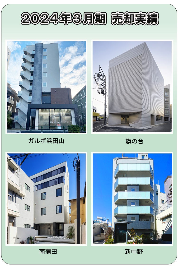 近時の例では、米国年金ファンドに対し複数の物件を売却した実績があるほか、大和証券グループの上場J-REIT「大和証券リビング投資法人」が、2021年に取得した3物件(ソリッド馬込、(仮称)永代プロジェクト、(仮称)中馬込プロジェクト)の開発・売却を主導しております。