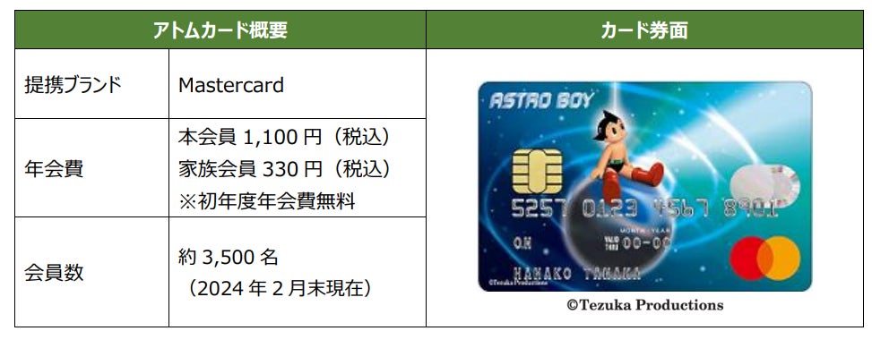 三井住友カード株式会社(本社:東京都江東区 代表取締役社長:大西 幸彦 以下、「三井住友カード」)と株式会社手塚プロダクション(代表取締役社長:松谷 孝征 以下、「手塚プロダクション」)は、社会貢献型クレジットカード「アトムカード」を発行しています。2003年より発行している「アトムカード」は、”子どもたちの夢を形にする”、”子どもたちの未来づくりに何らかの役に立ちたい”という手塚治虫先生の想いが込められており、カードのご利用金額の0.3%が子どもたちのために寄付される社会貢献型のクレジットカードです。