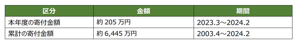 このたび、2023年度の寄付金額を確定しましたので、お知らせいたします。
