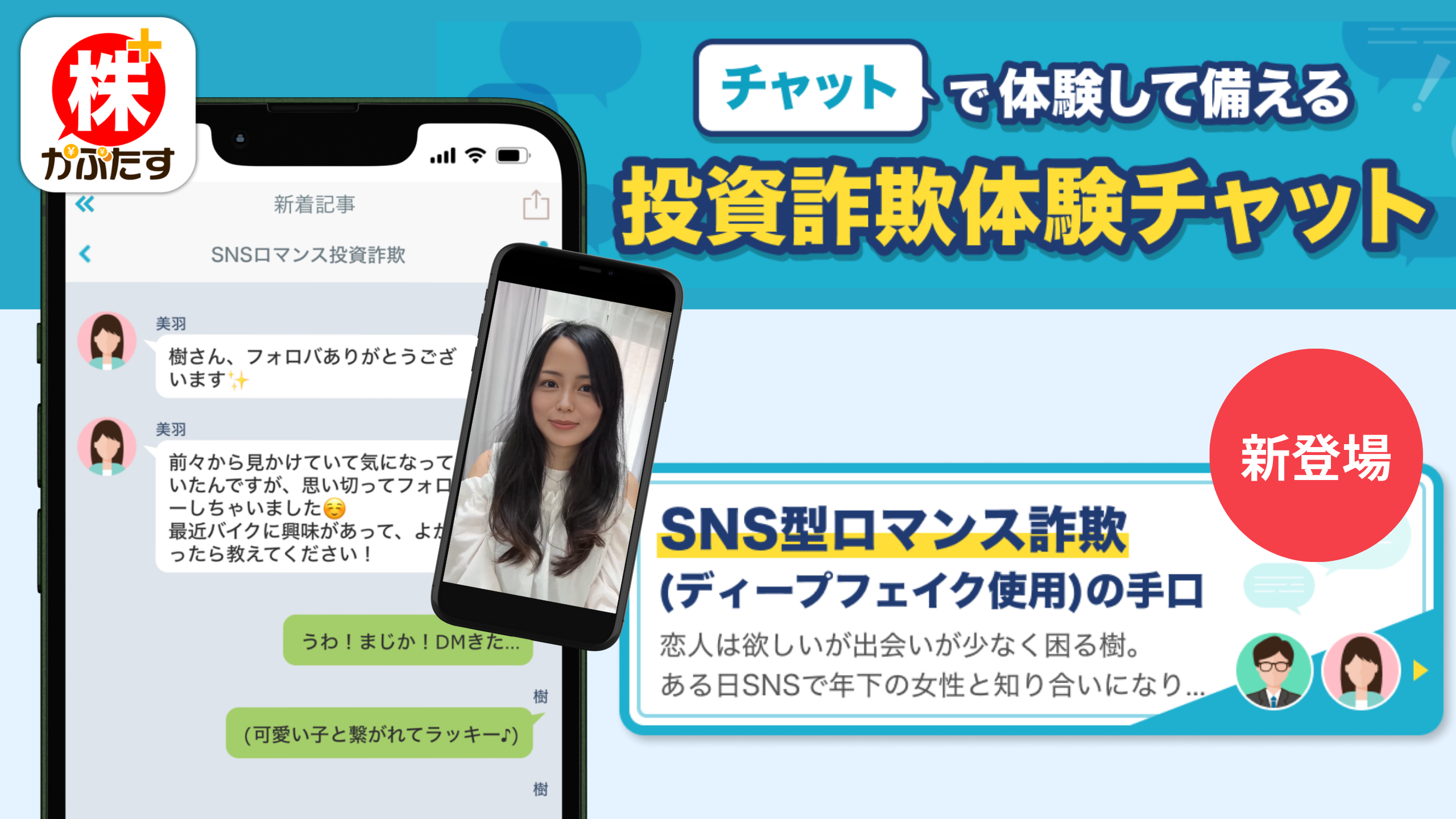 投資詐欺体験チャット「SNS型ロマンス詐欺」(ディープフェイク使用)編について
