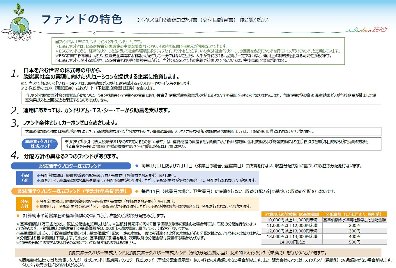 脱炭素テクノロジー株式ファンド(愛称:カーボンZERO) 脱炭素テクノロジー株式ファンド(予想分配金提示型)(愛称:カーボンZERO(予想分配金提示型)) |