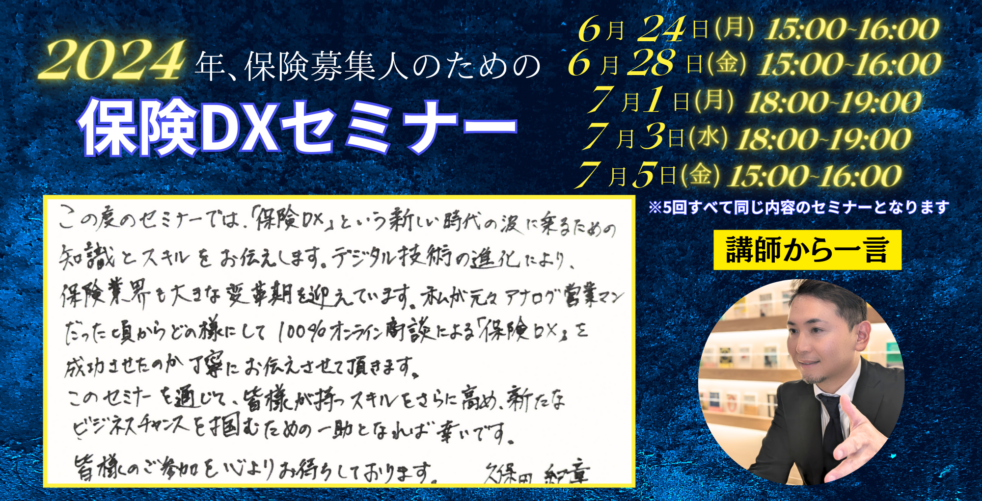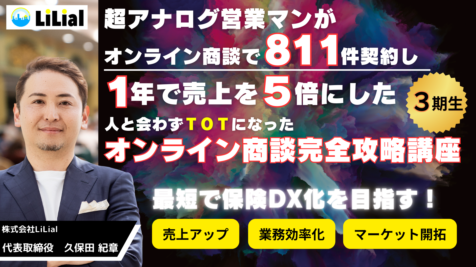 現在株式会社LiLial代表久保田が、2024年最新版 ≪保険営業向け≫保険のDXセミナーをオンラインで開催しております。各日、多くの方にご参加いただき、みなさまに大変好評いただいております。