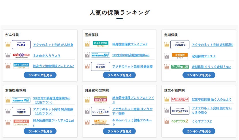 ※ランキングは各保険商品の優劣や推奨を示すものではなく、特定期間の申込件数、資料請求件数、及びアクセス数に基づいて作成したものです。