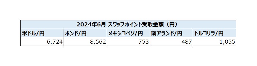 SBI FXトレード株式会社(本社:東京都港区、代表取締役社長:藤田 行生)は、2024年6月のスワップポイントの実績を公表しましたことをお知らせいたします。
