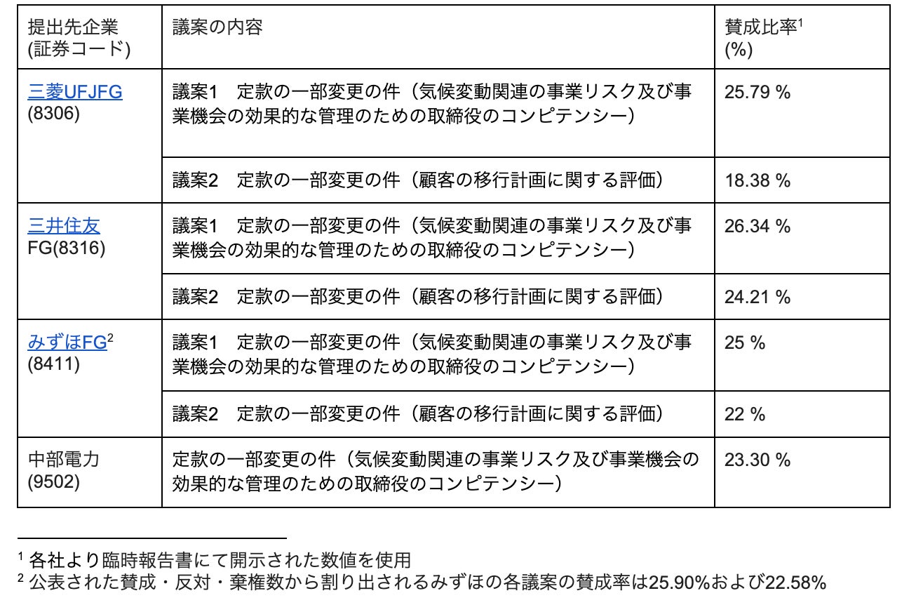 議決権行使結果〜メガバンク全3社含む日本企業の取締役のコンピテンシーに関する開示を要求〜