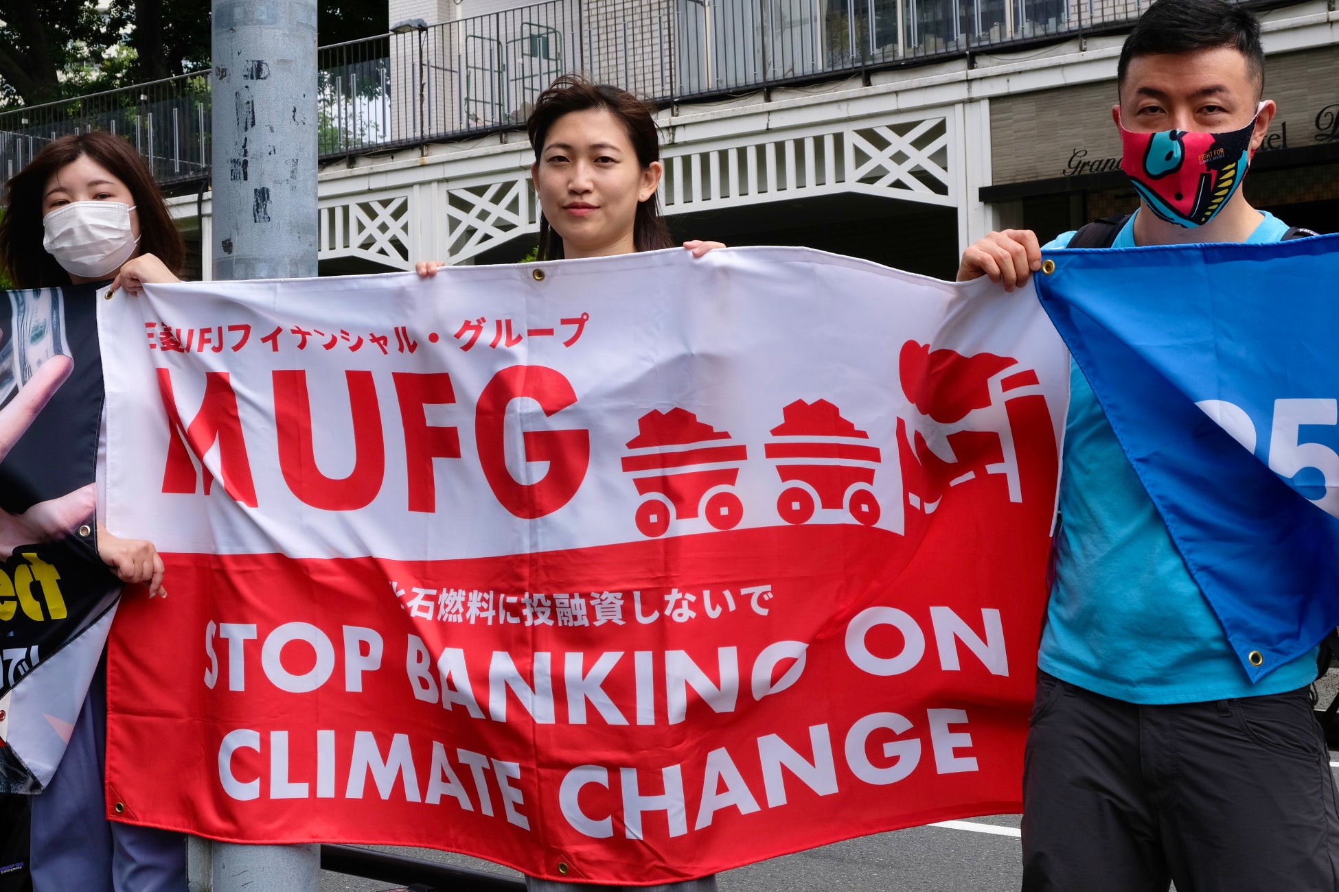 2021年、350.org Japan、RAN(個人株主)、気候ネットワーク、マーケット・フォースはMUFGに対し、株主提案を提出しました。決議後、MUFGは2050年までにポートフォリオ全体でネットゼロを目指すことを発表し、日本の銀行として初めてネットゼロバンキングアライアンスに加盟しました。その後、みずほFG、三井住友FGも追随しています。