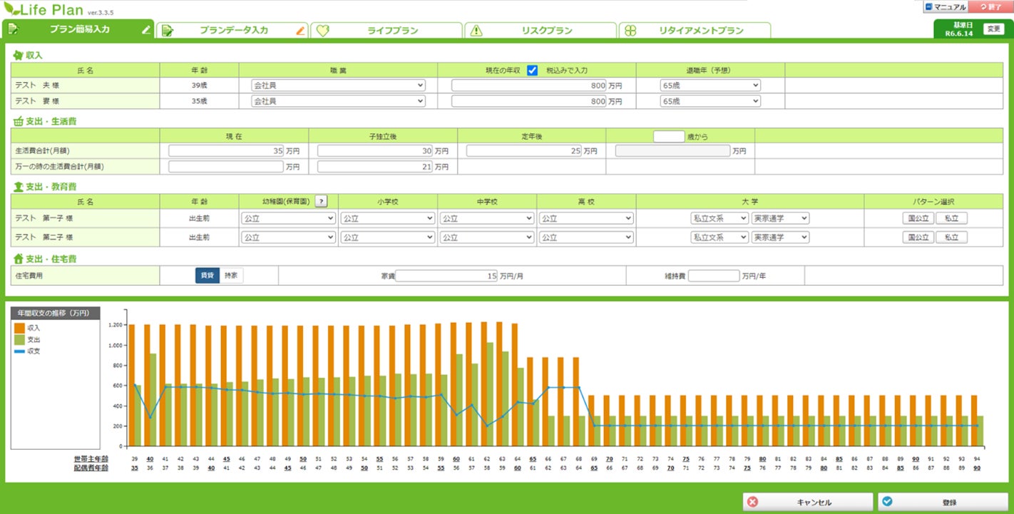 『保険クリニック®』では、ご夫婦の年収やお子様の学費や結婚資金、住宅ローンや維持費、お車の買い替えなど一つ一つの項目を詳しくお伺いし、「保険IQシステム®」に入力すると1年ごとの収支をグラフで表示することができることから、「いつ」「いくら」お金が必要なのか一目でわかるようになります。保険を検討される際も、ライフプランを実施されることでお客様と共に今後の生活に適したプランを作ることができます。