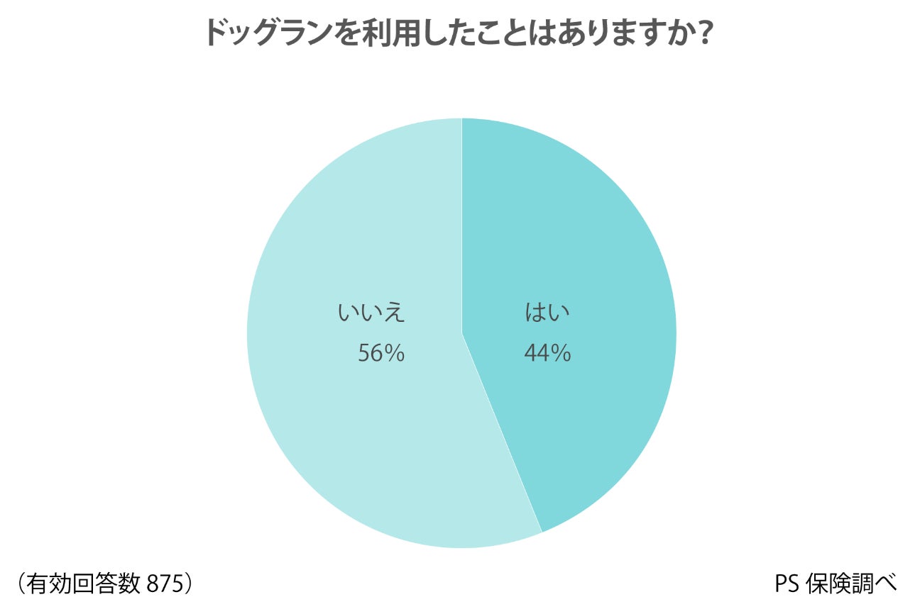 今回、犬の飼い主にアンケートを行ったところ、ドッグランを利用したことのある人は44%でした。