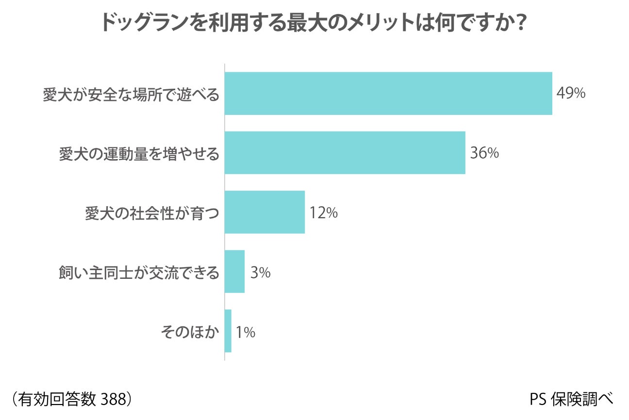 ドッグランのメリットは、愛犬を安全な場所で遊ばせられる点が最多(49%)。