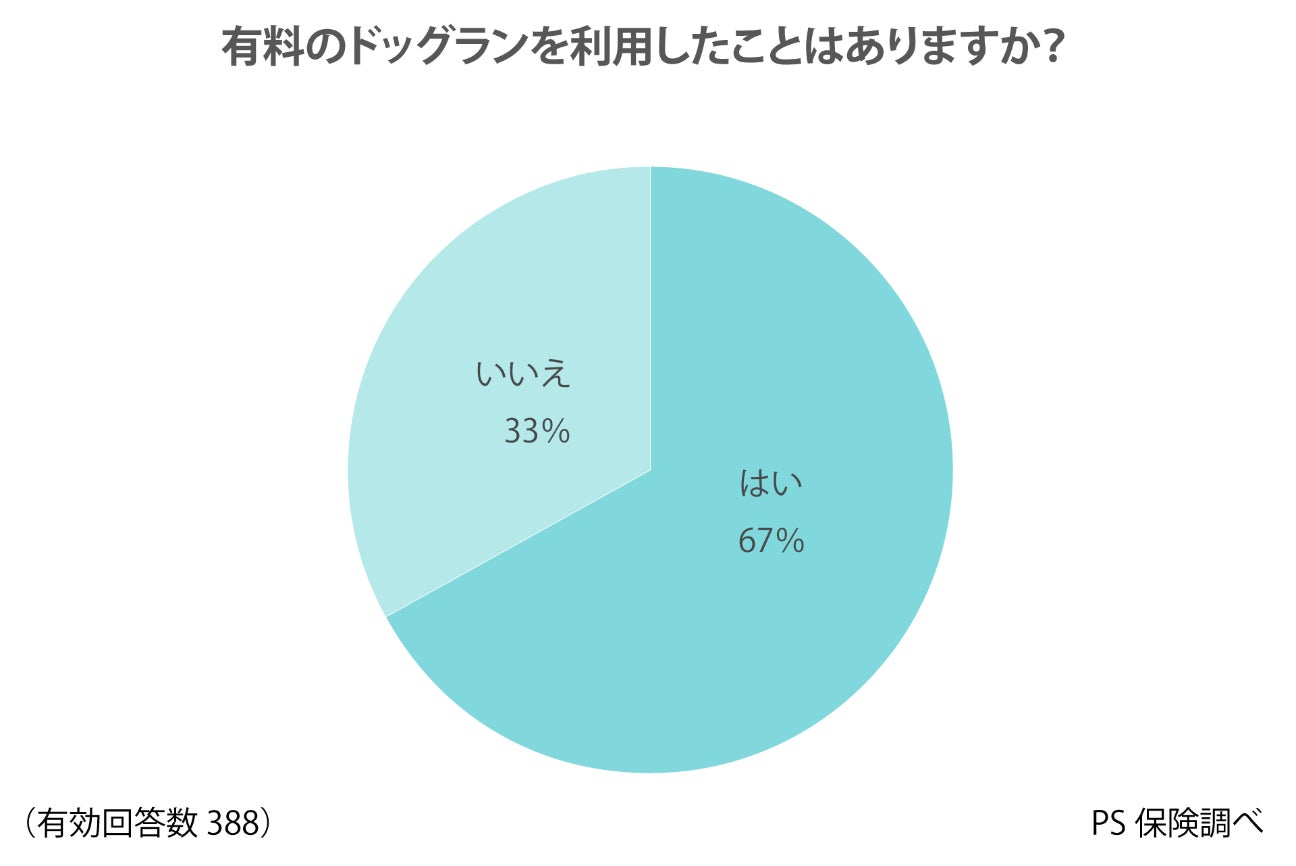 ドッグランの利用経験がある飼い主のうち、67%が有料のドッグランを利用したことがあると回答しています。有料でも利用価値を見出す飼い主は少なくありません。