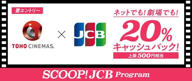 株式会社ジェーシービー(本社:東京都港区、代表取締役兼執行役員社長:二重 孝好、以下:JCB)は、TOHOシネマズ株式会社(本社:東京都千代田区、代表取締役社長:池田 隆之、以下:TOHOシネマズ)と、2024年8月1日(木)から8月31日(土)まで、「TOHOシネマズでJCBを利用すると20%キャッシュバック!」キャンペーンを実施します。