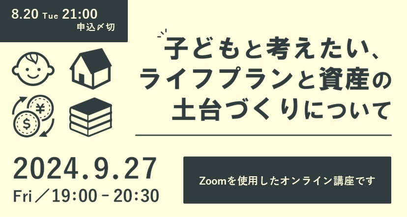 【9/27(金)夜 オンライン講座】子育て×お金の問題ってどうしよう!? 子どもと考えたい、ライフプランと資産の土台作り