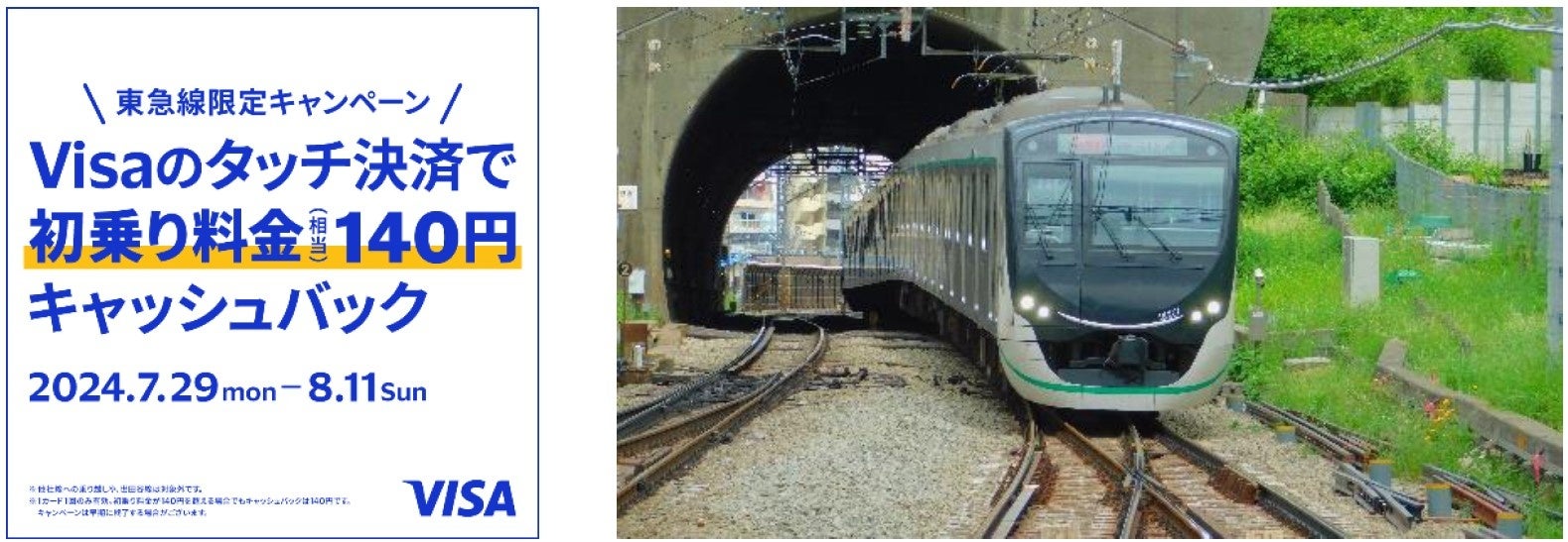ビザ・ワールドワイド・ジャパン株式会社(本社:東京都千代田区、代表取締役社長:シータン・キトニー、以下Visa)と東急電鉄株式会社(本社:東京都渋谷区、取締役社長:福田 誠一、以下:東急電鉄)は、2024年7月29日より「東急線限定キャンペーン Visaのタッチ決済で初乗り料金(相当)140円キャッシュバック」を、世田谷線を除く東急線全駅で展開することを発表いたします。