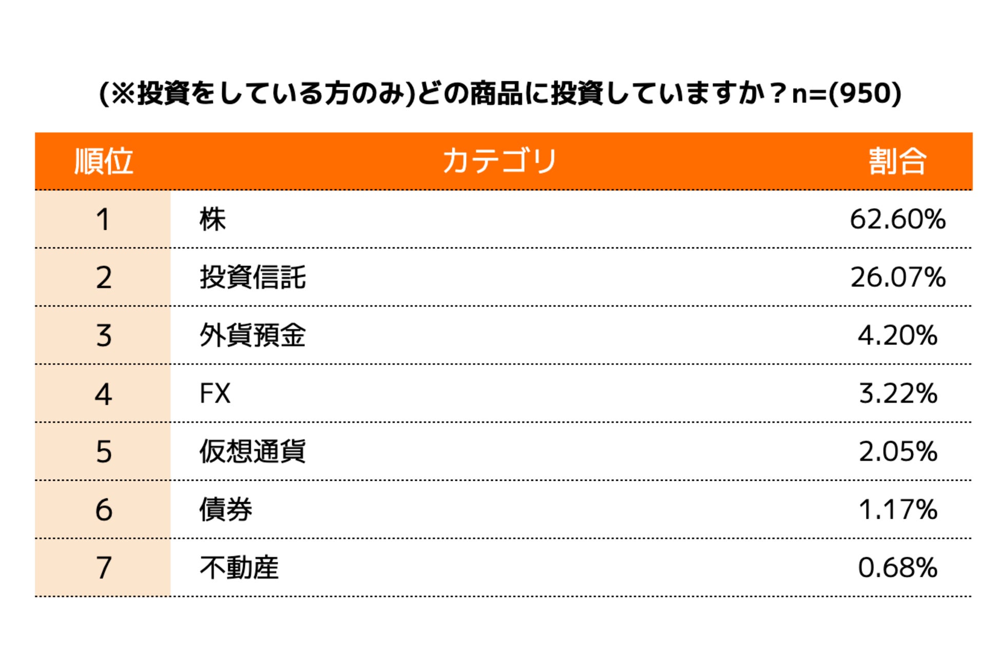 外貨預金や債券、不動産などの投資は取り組んでいる人が極端に少ないという結果になりました。