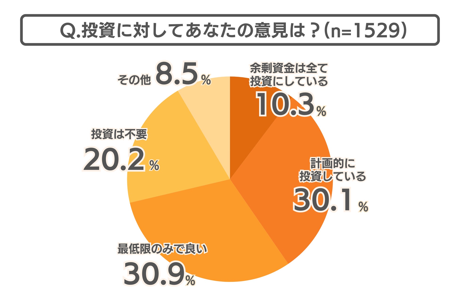 投資に対する意見で多かったのは「最低限で良い」「計画的に投資している」という意見で、どちらも30%程度でした。