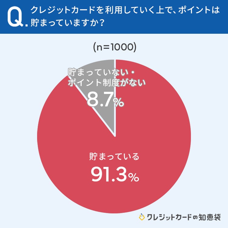 91.3%とほとんどの方が「クレジットカードのポイントが貯まっている」と回答しています。