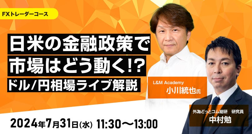 事前お申込み不要!参加費無料!【日米の金融政策で市場はどう動く!?ドル/円相場ライブ解説』を7/31(水)に開催いたします