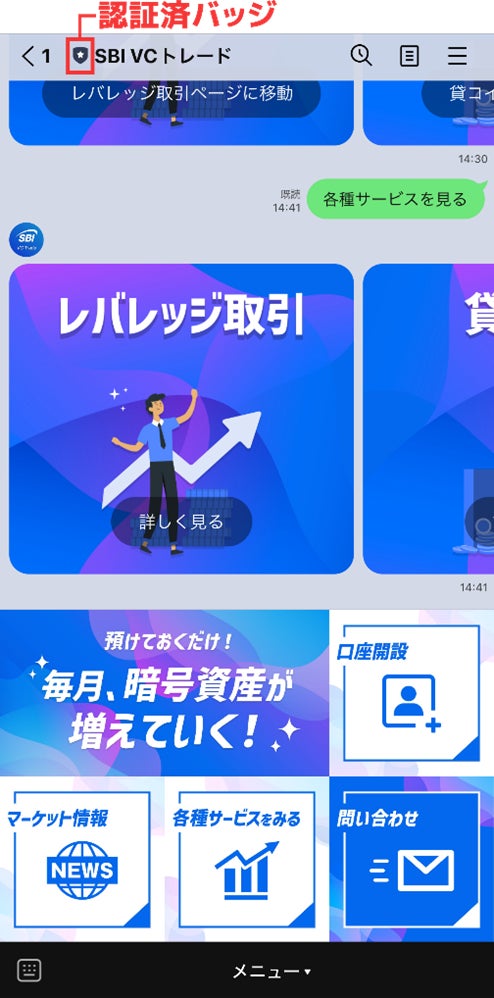 ・当社LINE公式アカウントは、青色のバッジの付いた認証済アカウントです。当社を名乗る詐欺アカウントに、十分にご注意いただきますようお願いいたします。