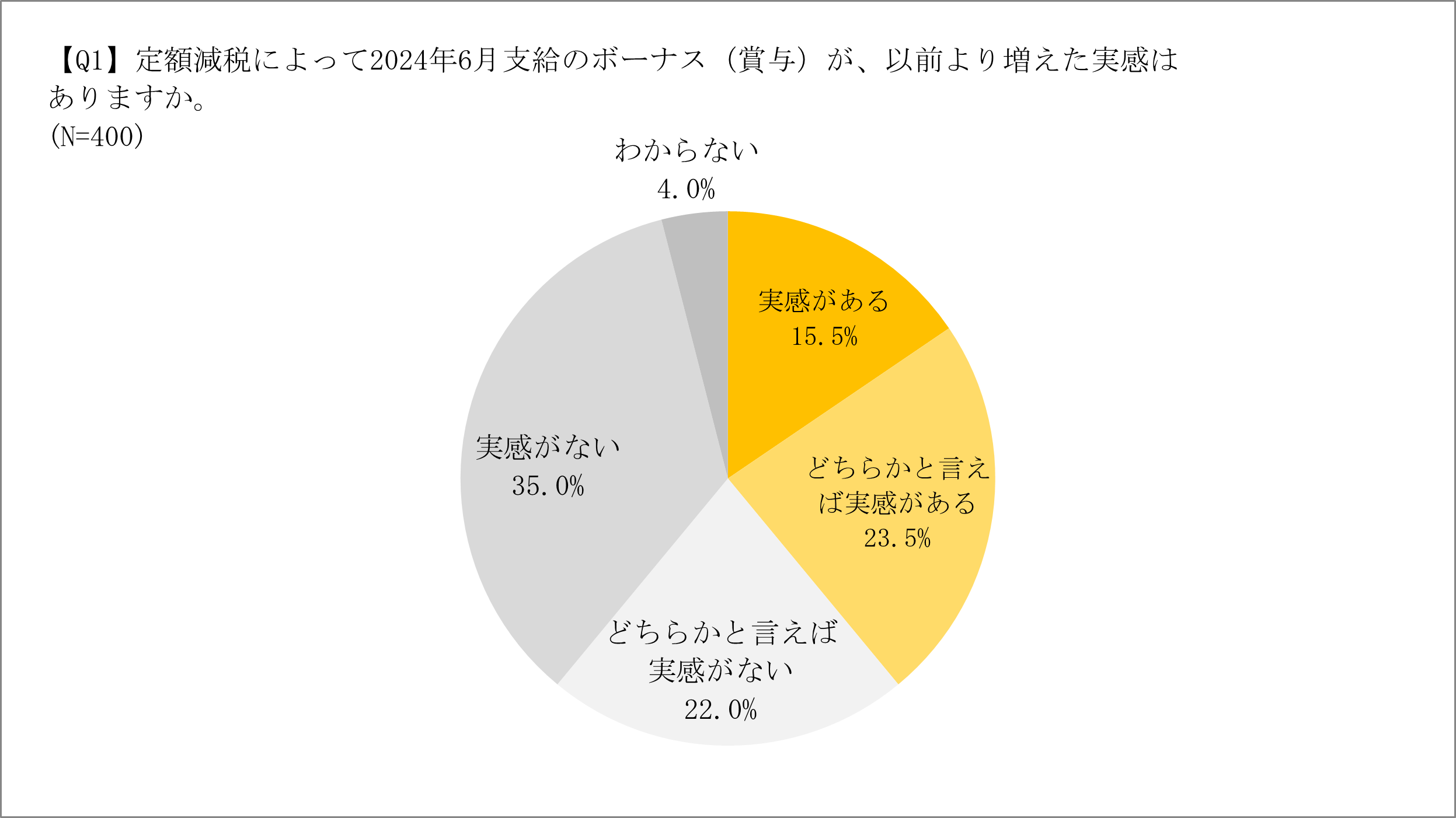 ・2024年6月に実施された定額減税について、半数以上の人がボーナスへの影響を実感していない。