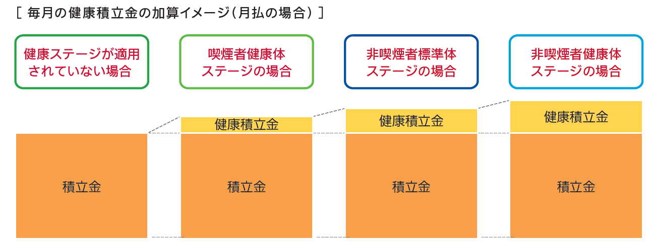 ‐各健康ステージに応じて健康積立金を、毎月積立金に加算