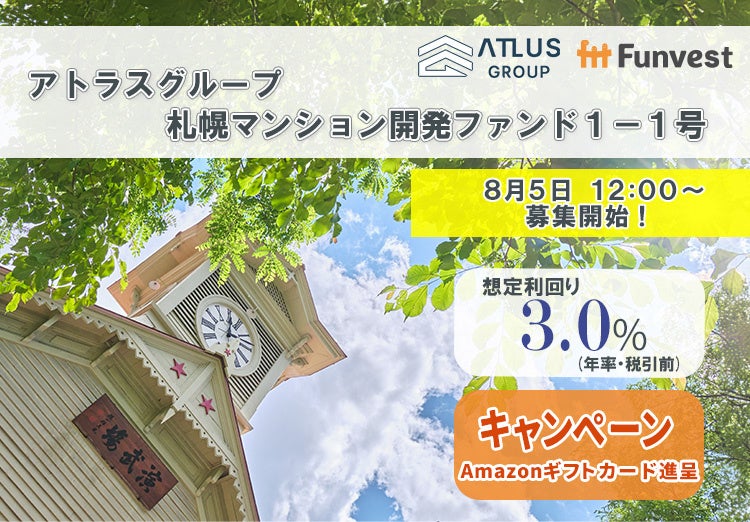 「未来をわかちあう投資」を提供する「Funvest(ファンベスト)」(以下、Funvest)は、「アトラスグループ 札幌マンション開発ファンド1-1号」(以下、本ファンド)の募集を8/5より開始しますので、お知らせいたします。