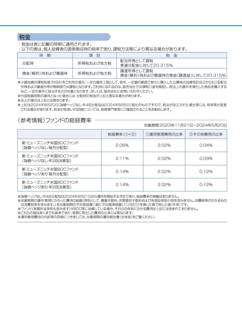 (以下の資料は、上記ファンド、ならびに「新・ミューズニッチ米国BDCファンド(為替ヘッジなし・毎月分配型)」「新・ミューズニッチ米国BDCファンド(為替ヘッジあり・毎月分配型)」「新・ミューズニッチ米国BDCファンド(為替ヘッジなし・年2回決算型)」「新・ミューズニッチ米国BDCファンド(為替ヘッジあり・年2回決算型)」の5ファンドの共通資料となります)
