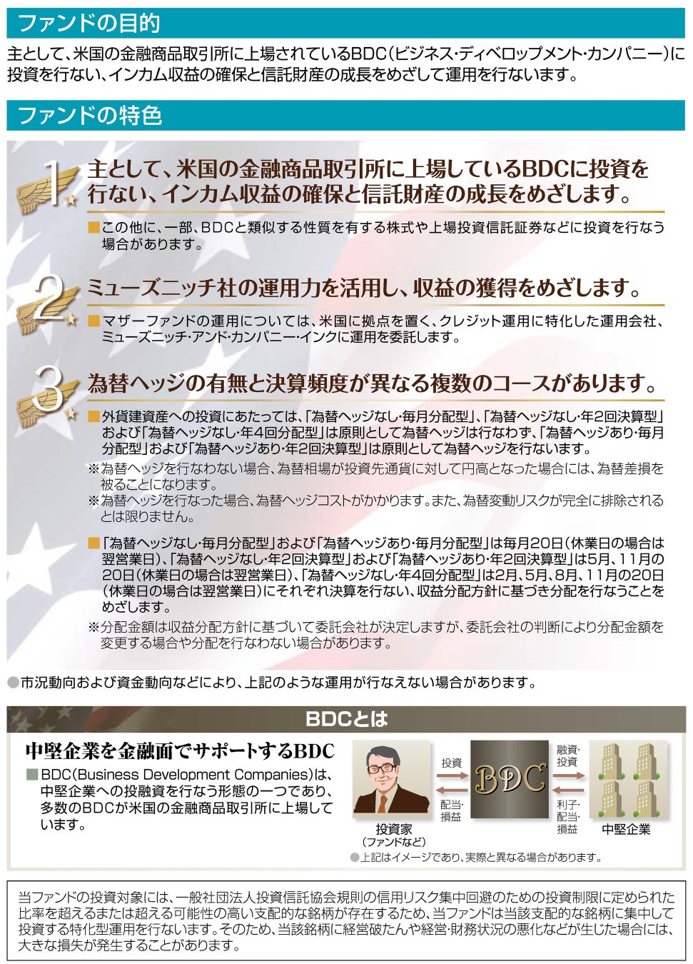 商品名 : 「新・ミューズニッチ米国BDCファンド(為替ヘッジなし・年4回分配型)」