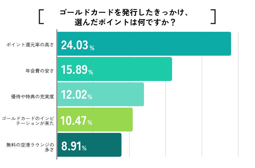 ゴールドカードを発行したきっかけや選んだポイントは、「ポイント還元率の高さ」が24.03%と最も多かった。