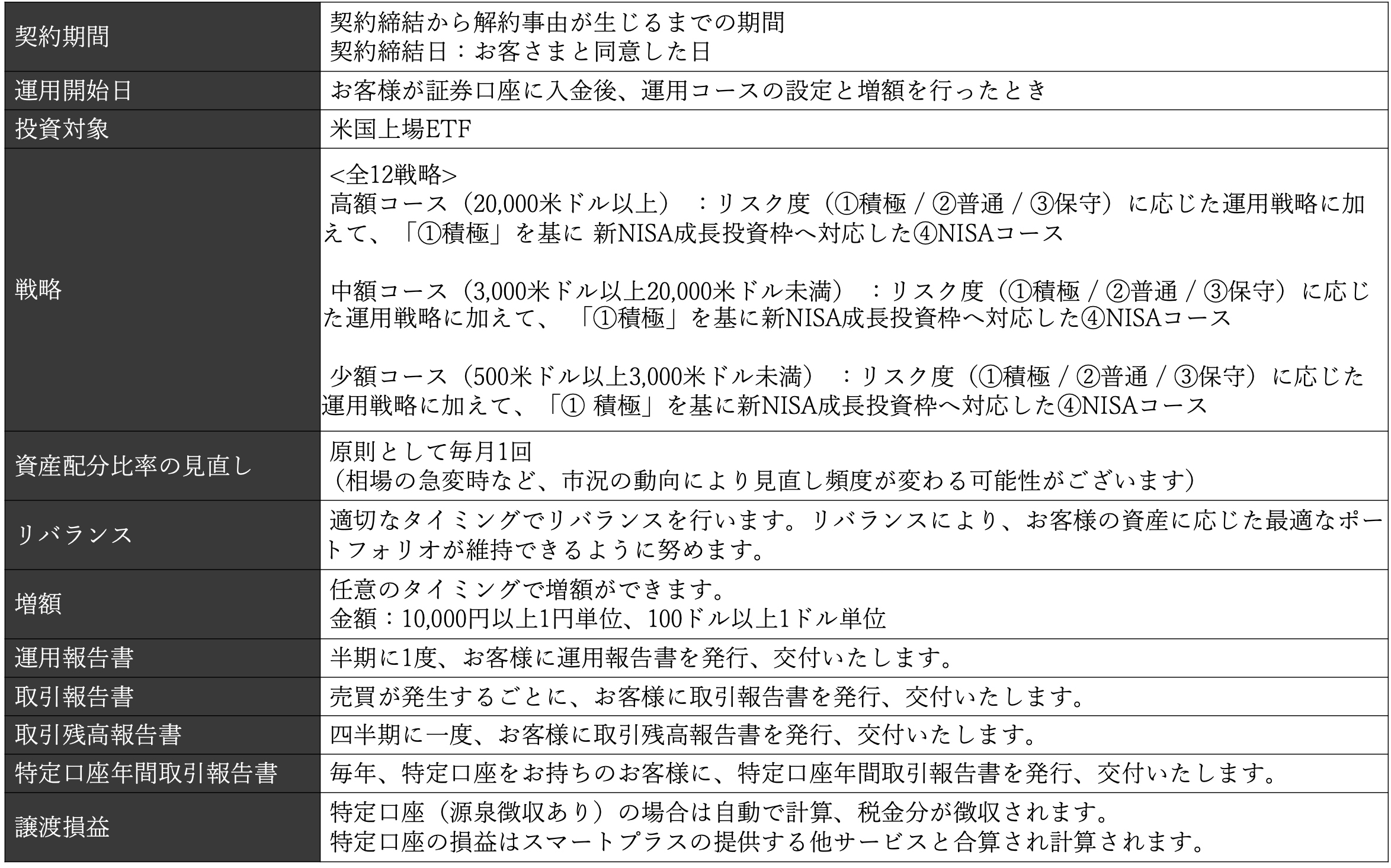 これまでは専門家や富裕層だけが享受できていた高度な資産運用戦略を、より多くの方々の手の届くものにすることを目指しています。新NISA対応や積立投資設定の導入により、長期的かつ効率的な資産形成が可能となり、お客様にとってより効果的な選択肢が提供されるようになりました。私たちは、お客様一人ひとりの人生設計に寄り添い、その実現をサポートすることで、日本の資産形成文化を変革していきたいと考えています。