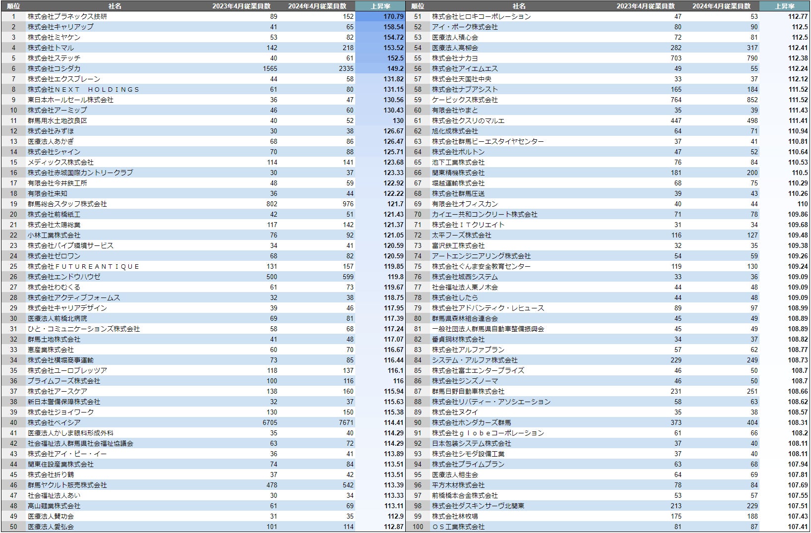 「誰もが活躍できる仕組みをつくる。」をミッションに掲げ、セールスチームの武器となるデータベース「SalesNow」を展開する株式会社SalesNow(本社:東京都渋谷区、代表取締役:村岡功規、以下「SalesNow」)は、国内540万社の企業情報を完全網羅した日本最大級のデータベース「SalesNow DB」より、前橋市に本社を置く企業の成長企業ランキングTOP100を調査しました。