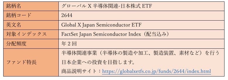 ●商品概要: 「グローバルX 半導体関連-日本株式ETF」(2644)