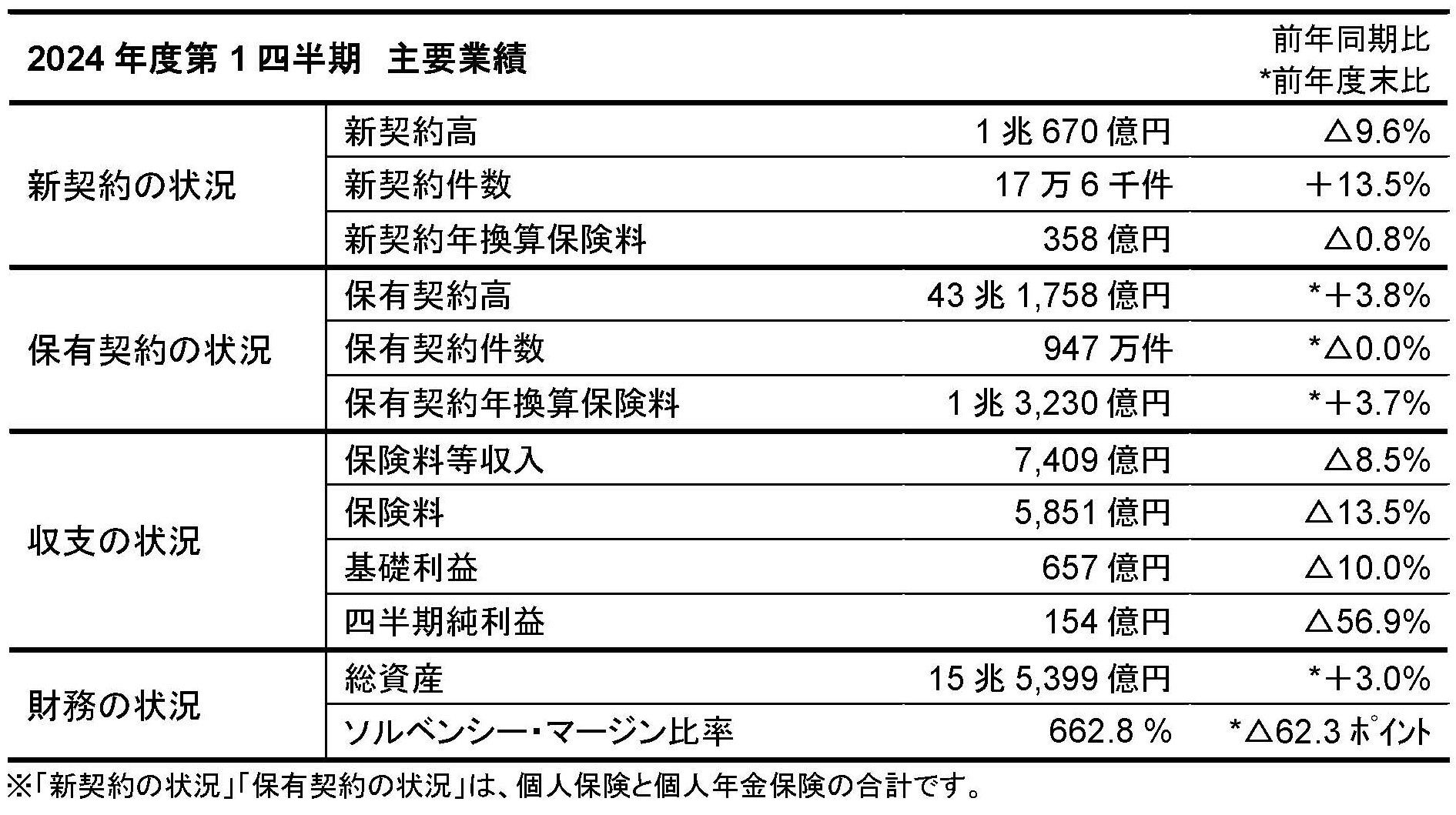 メットライフ生命保険株式会社(代表執行役 会長 社長 最高経営責任者 ディルク・オステイン)の2024年度第1四半期(2024年4月1日~2024年6月30日)の業績をお知らせします。