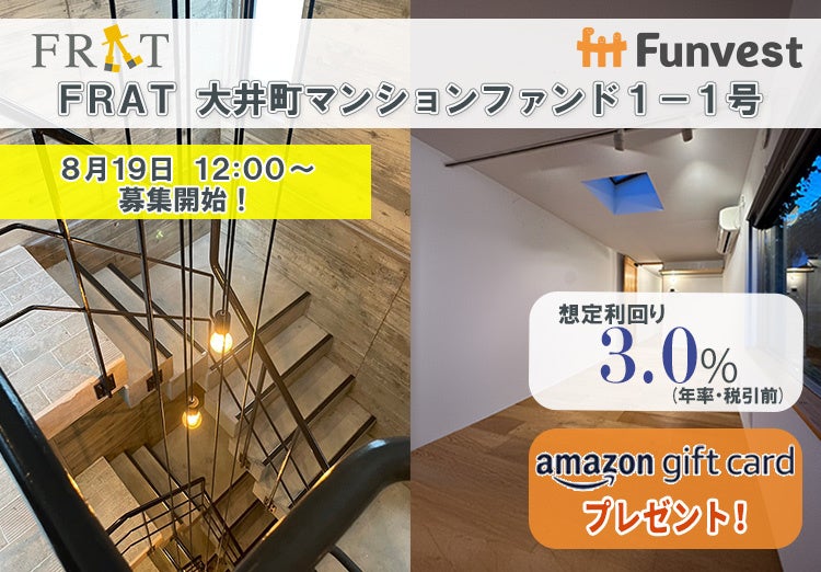 「未来をわかちあう投資」を提供する「Funvest(ファンベスト)」(以下、Funvest)は、「FRAT 大井町マンションファンド1-1号」(以下、本ファンド)の募集を8/19より開始しますので、お知らせいたします。