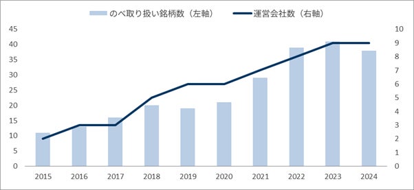 グラフ1:株主コミュニティ運営会社数とその取り扱い銘柄数