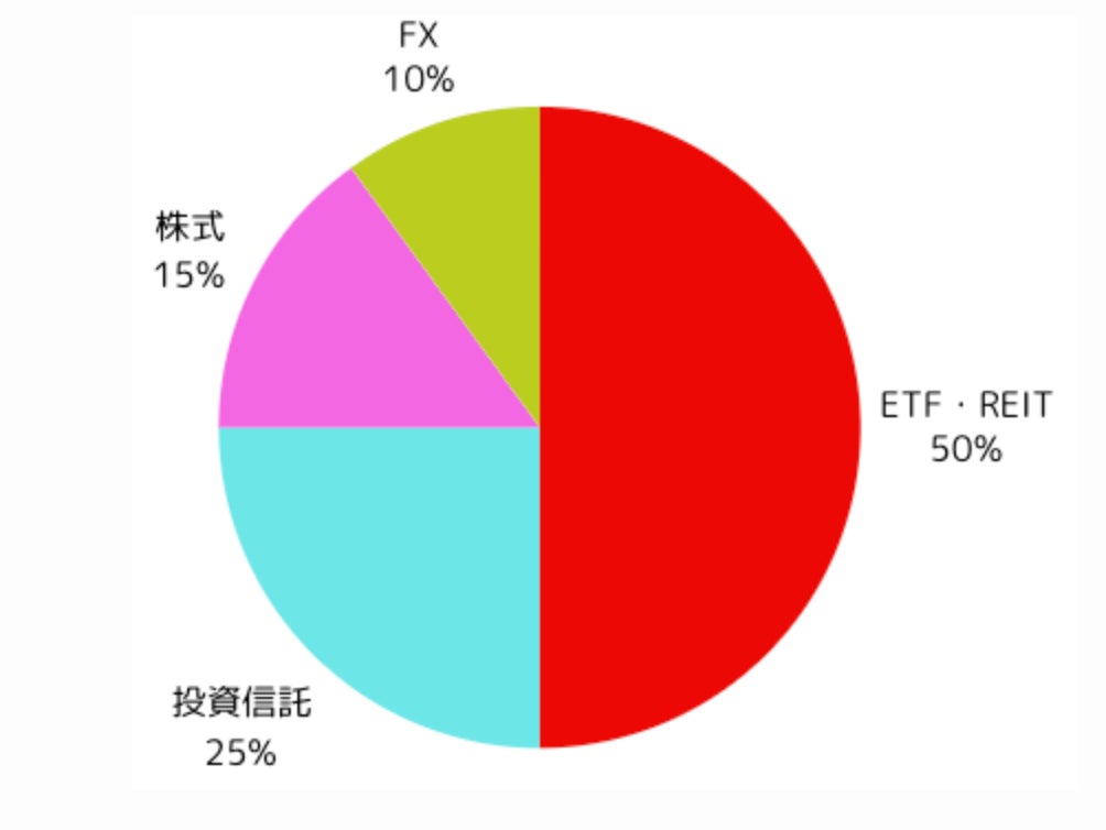 一方で、FXや外貨預金、ETF・REITをポートフォリオに組み込んでいる30代も一定数おり、以下のように投資信託や株式以外をメインに運用しているケースも見受けられた。