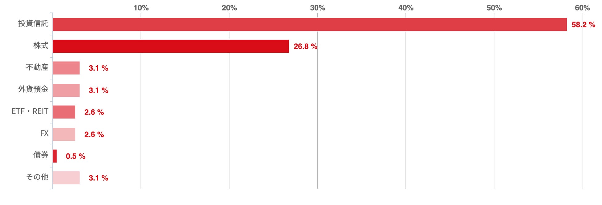 また、運用先としては投資信託と株式が特に人気を集めており、長期・分散・積立投資を実践しつつ、高いリターンを狙っていく姿勢が伺える。