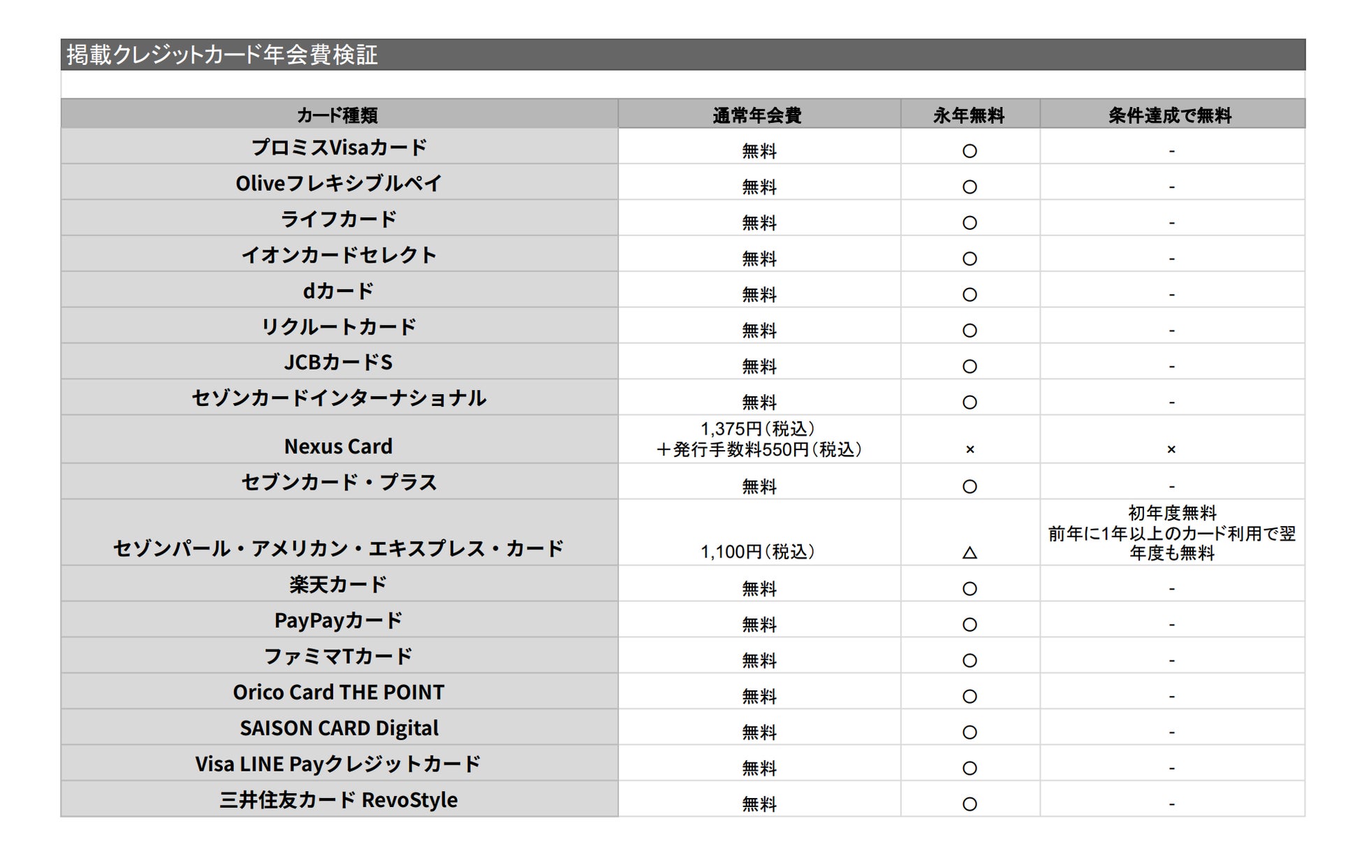 また、それぞれの検証ポイントについて、紹介しているクレジットカードの情報を調査しPDFにまとめました。