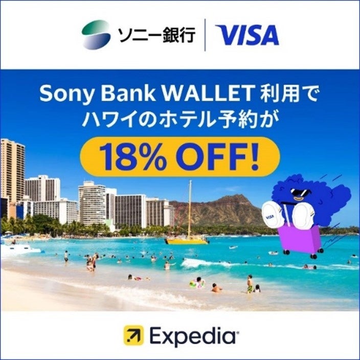 Sony Bank WALLET とエクスペディアの共同キャンペーンページからハワイのホテル予約の際、決済ページにて専用クーポンコードを入力し Sony Bank WALLET で決済すると、ハワイのホテル料金が18%割引となります。(上限割引金額:1回あたり30,000円) |