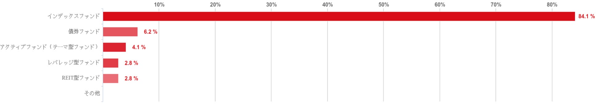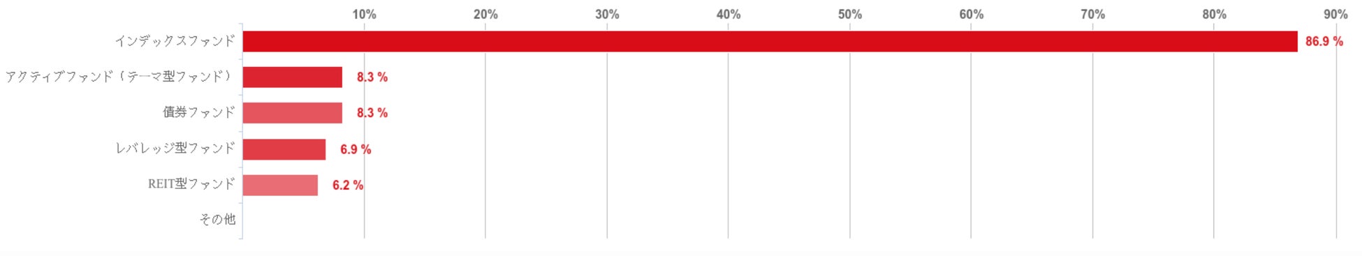 また、「アクティブファンド(テーマ型ファンド)」と「債券ファンド」で運用している投資家がそれぞれ8.3%いる他、「レバレッジ型ファンド」は6.9%、「REIT型ファンド」は6.2%の投資家が運用していた。