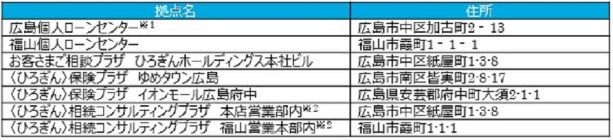 ※2 相続関連のご相談については、〈ひろぎん〉ライフコンサルプラザと近隣の店舗が連携して対応