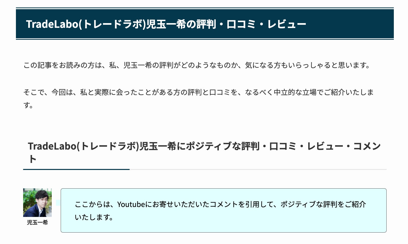 児玉一希本人が執筆した「児玉一希の評判・口コミ」に関する記事について