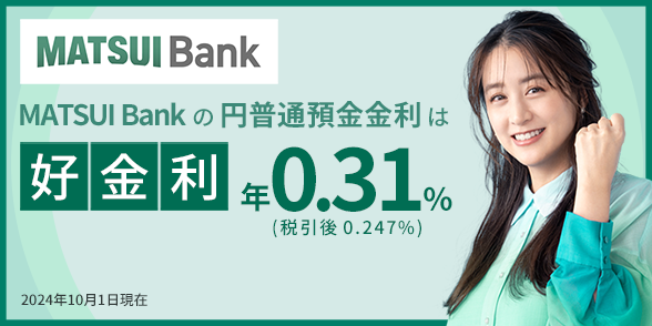 MATSUI Bank、円普通預金金利を業界最高水準 年0.31%(税引前)に引き上げ