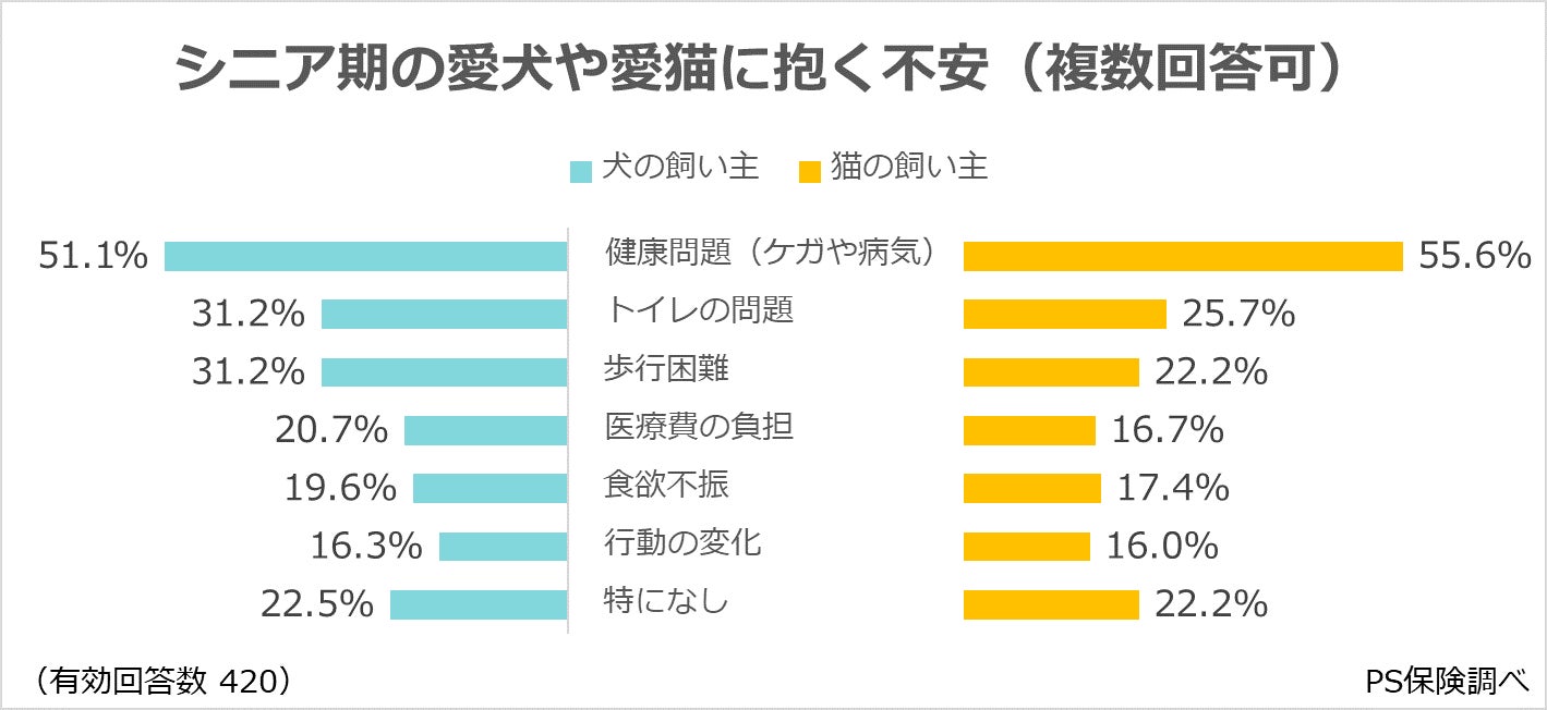 シニア期の愛犬や愛猫に抱く不安は共に「健康問題(ケガや病気)」が最多