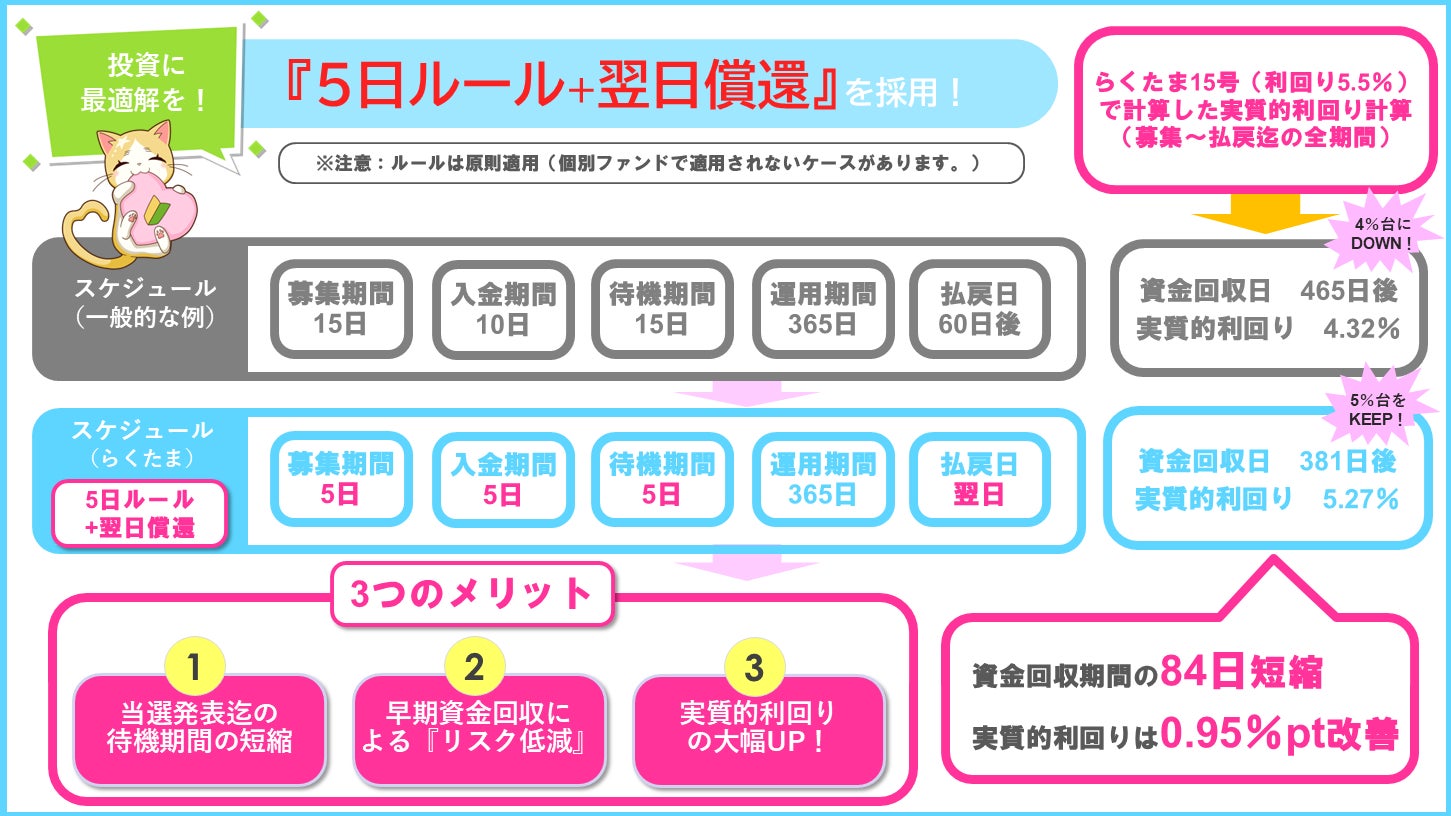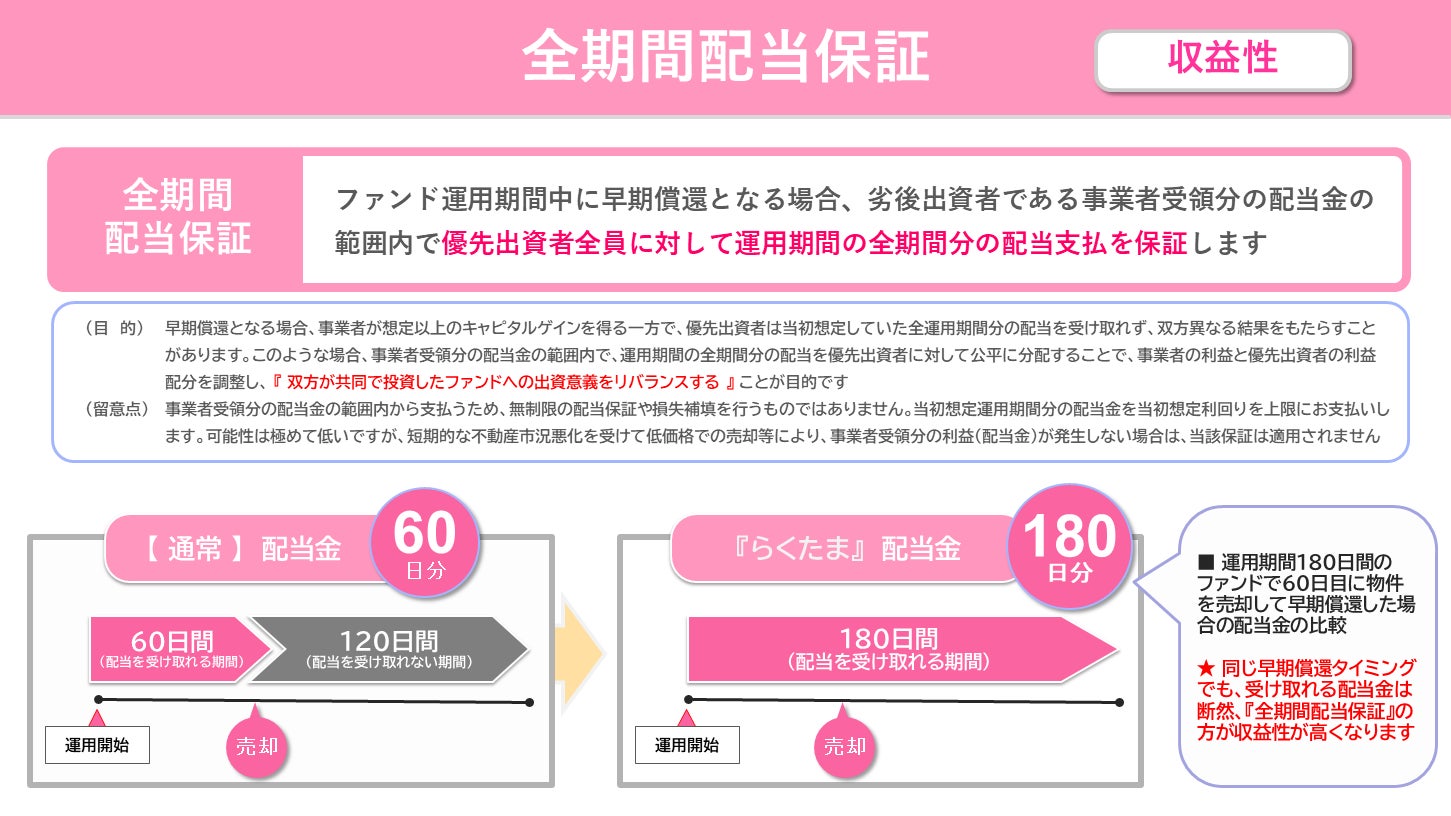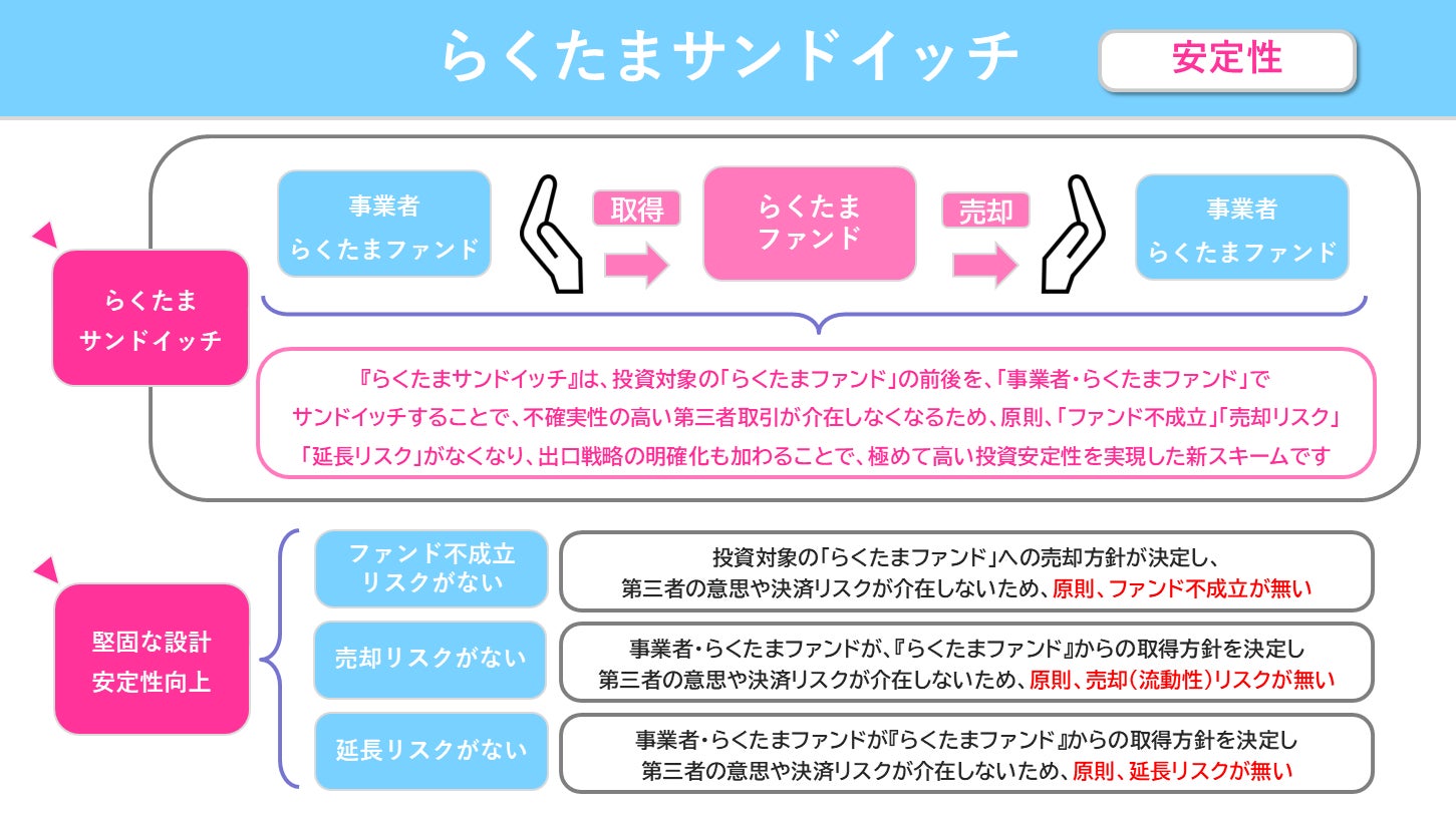 『らくに、たまる』をコンセプトに、不動産知識や投資経験が少ない方でも、1万円から楽しく安心して参加できるファンドをつくります。『らくたま』は投資家ファーストでいつも考えます。