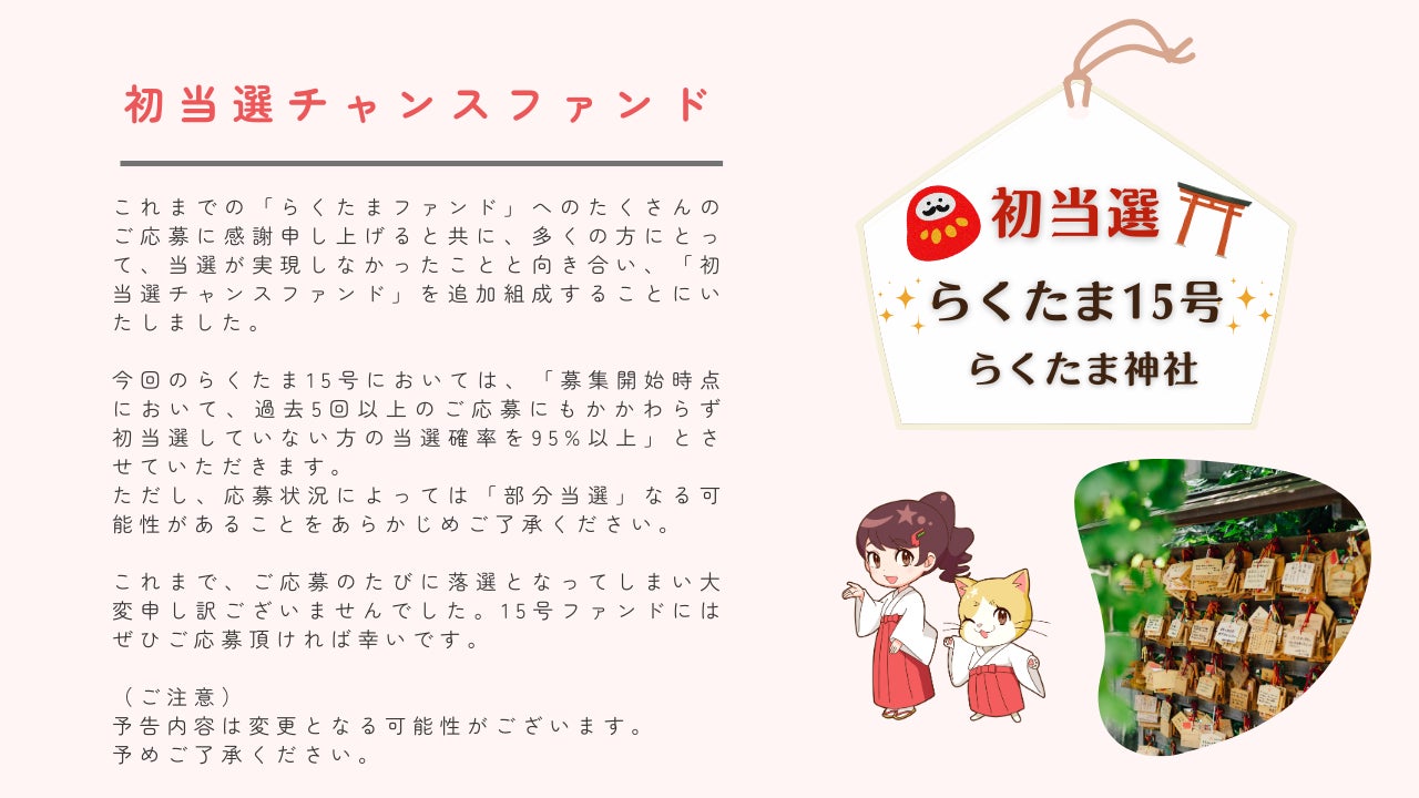 ◆初当選チャンスファンド(落選者にBIG CHANCE!!)