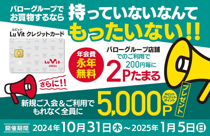 バローホールディングス株式会社の子会社、株式会社バローフィナンシャルサービス(本社:愛知県名古屋市中村区名駅南一丁目16番21号/代表:小池 孝幸)のではLu Vit クレジットカード 新規ご⼊会キャンペーンを開始致します。