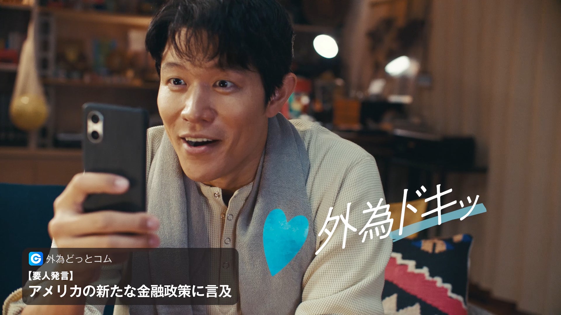 今回の新CMのテーマは「外為ドキッ」。これまであまり気に留めていなかった世の中のニュースが、実は為替の変動に関わっていて、FX取引をしている自分にも関係していくことへの楽しさを伝える内容となっています。