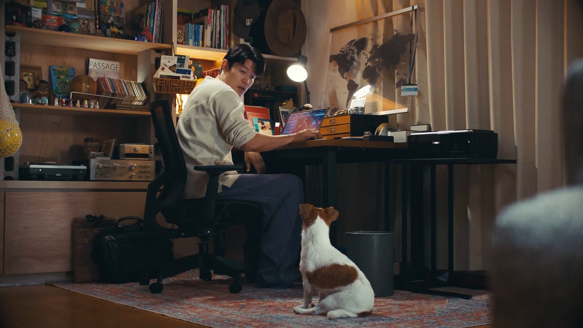 夜、お風呂上がりにふとテレビのニュースをみるオフな姿の鈴木亮平さん。ニュースを横目に微笑むところにスマートフォンからの通知音を聞き、駆け寄ります。通知内容を見るやいなや、「おーっ!」と声を上げ「外為ドキッ」になった鈴木さんはハイテンションでパソコンへ。夢中になってしばらく画面を見つめている鈴木さんを呼びかけるワンちゃんの声ではっと気が付きます。世界で起きているニュースはなかなか自分事としてとらえる人は多くありませんが、そのきっかけで為替が動き、心が動き、FX取引を楽しむ様子を演じてもらいました。