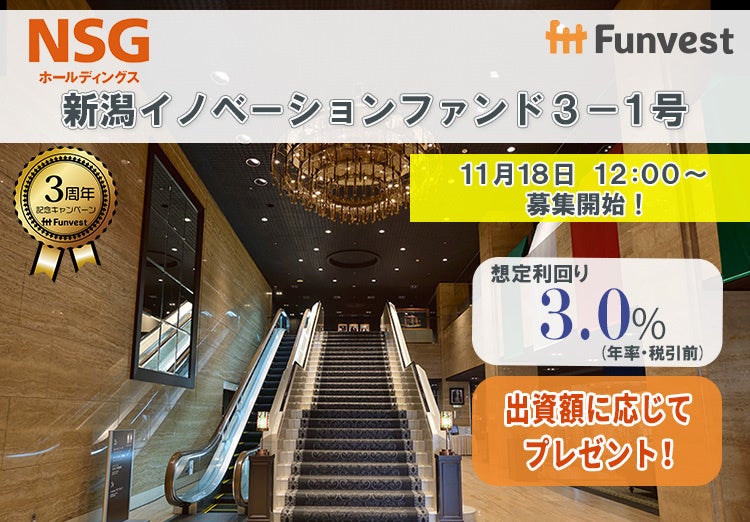 「未来をわかちあう投資」を提供する「Funvest(ファンベスト)」(以下、Funvest)は、「NSGホールディングス 新潟イノベーションファンド3-1号」(以下、本ファンド)の募集を11/18より開始しますので、お知らせいたします。